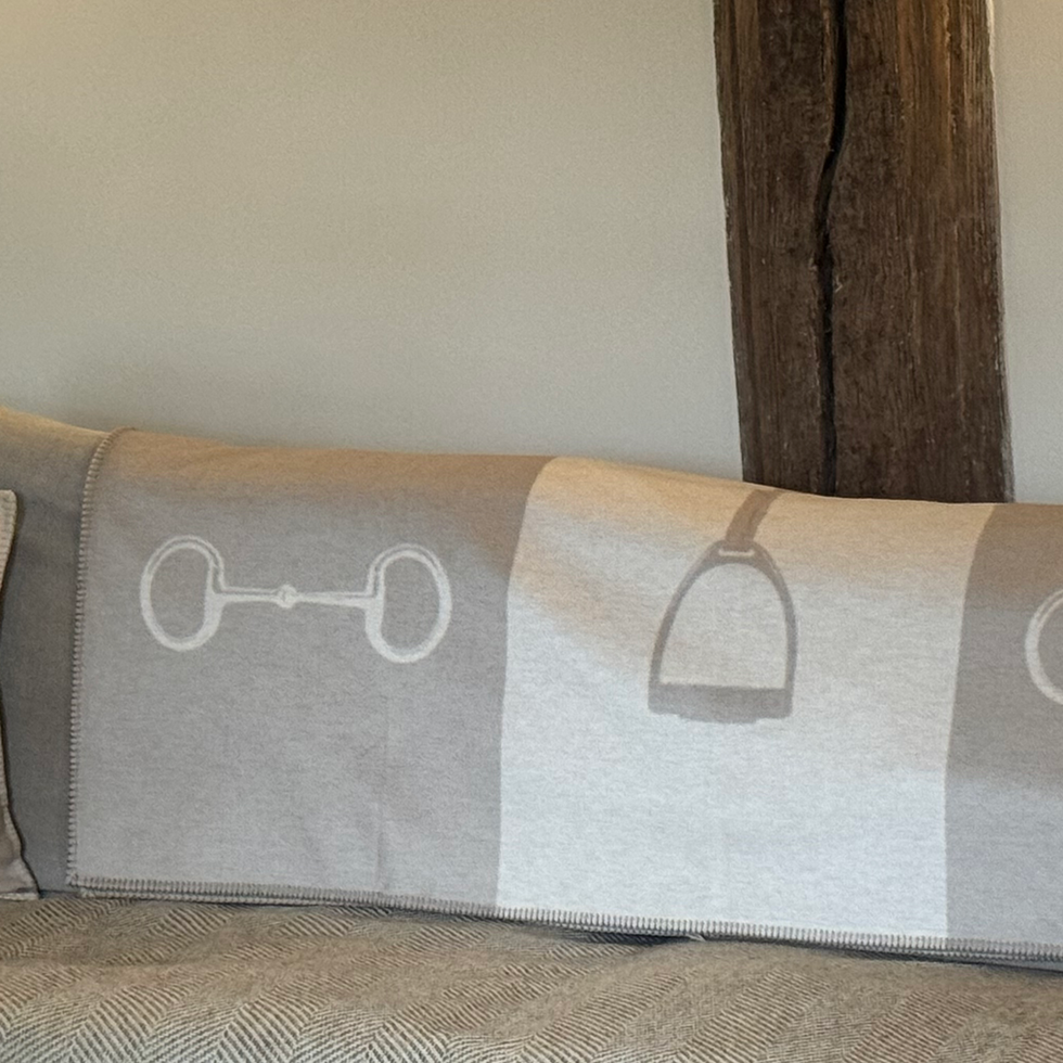 Add a touch of refined country elegance to your home with our exclusive Burleigh Throw. Designed in the UK by Saddle & Style Interiors, and crafted from a luxurious wool-blend fabric, this throw combines warmth, texture, and durability with a timeless equestrian aesthetic. Available in the neural 'beige-grey' shade.